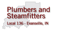 Plumbers and Steamfitters Local 136 812-423-8043 2300 St. Joe Industrial Park Dr. Evansville, IN 47720 http://ualocal136.org/