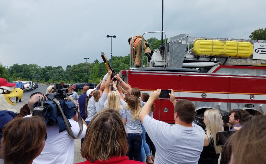 “I’m just glad it’s not raining so they get to ride the fire truck. I want them to get to ride on the fire truck and I'll be shouting and waving my pom poms.”